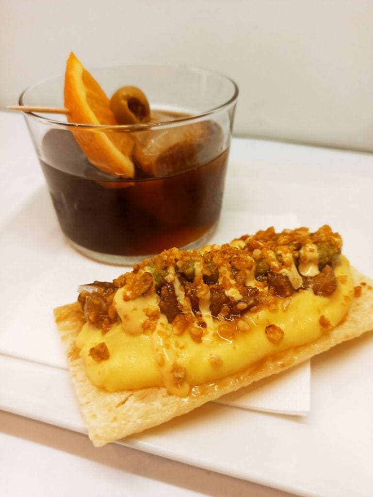 Al pedir tu bebida, ya sea un vermut clásico, un refrescante gin tonic o cualquier otra elección que te apetezca, el restaurante te obsequia con una tapa gratuita.